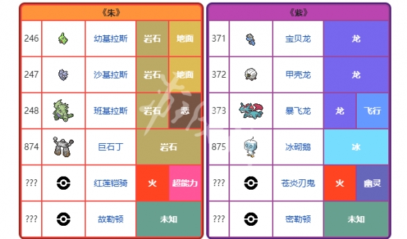 朱:班吉拉斯家族,巨岩丁,紅蓮鎧騎,故勒頓。還有沒有公布的古代種。頓甲(古代種)、胖丁(古代種)、火神蛾(古代種)、敗露球菇(古代種)、三合一磁怪(古代種)、夢妖(古代種)、暴飛龍(古代種)和水君。
