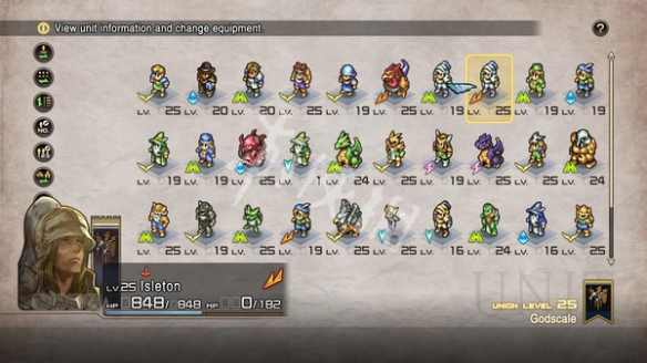 每個單位最多可裝備7個武具,消耗品和魔法的裝備欄位則各有4個。