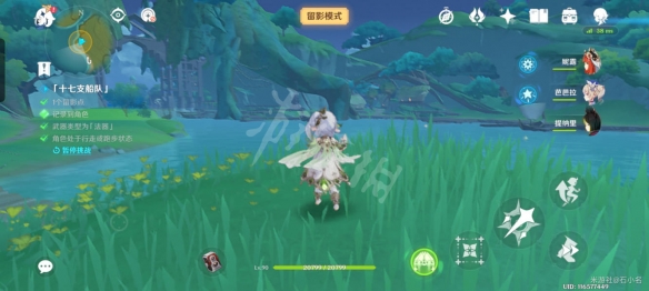 5、拍照前,換上法器角色。然後,需要角色處於走路或者跑步狀態,點擊左下角[留影機]拍照,即可完成挑戰。
