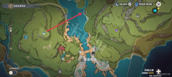 1、打開地圖,來到奧摩斯港標記傳送點位置。