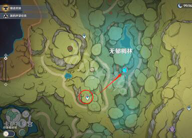 1、我們先來到無郁稠林下面的傳送點,然後我們飛過去,前往第二個留影點。
