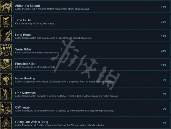 關於戰錘40K暗潮成就列表一覽為大家分享完畢,還不清楚都有什麼成就的網友可以看下上面的成就截圖,以便有個大概的了解。