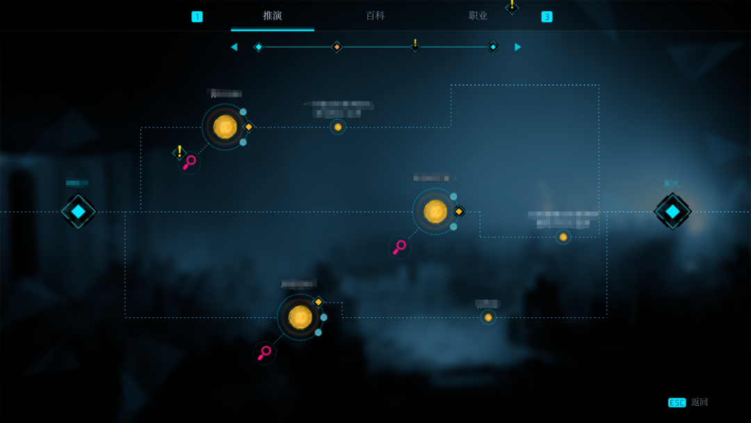 收集到的線索會被記錄到「推演」中。在「推演」里,每一個黃色的節點代表一個需要玩家解答的問題,玩家需要做的就是根據線索,做出自己的推理和判斷。