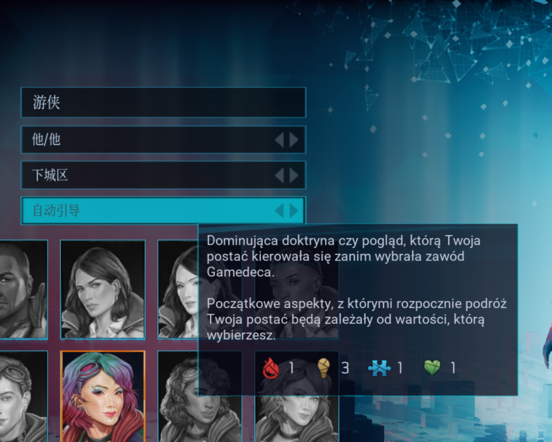 – 在以中文運行遊戲時,偶爾能看到一些漢化不完全的對話——而且不是未漢化的英語,是未漢化的波蘭語。- 在人物創建界面中,滑鼠懸停在「價值」屬性上,會顯示一段說明,而這段說明居然也沒有進行漢化。