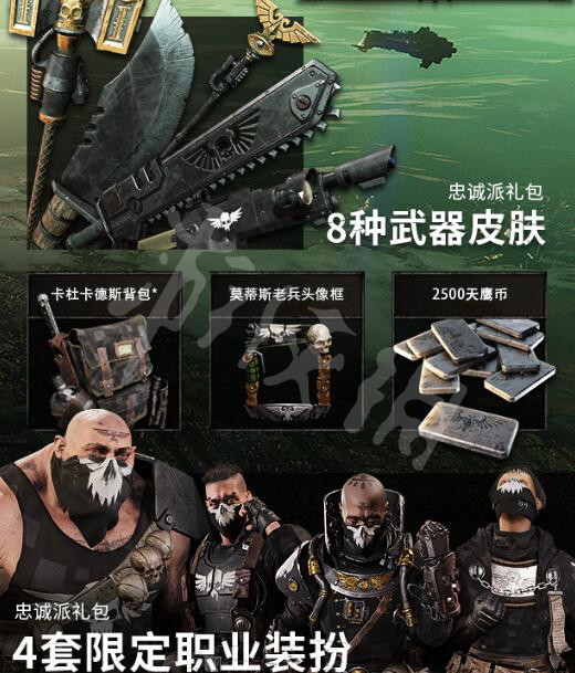 忠誠派禮包:4套限定職業裝扮、8種武器皮膚、1副頭飾、1個歐格林紋身。