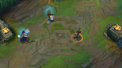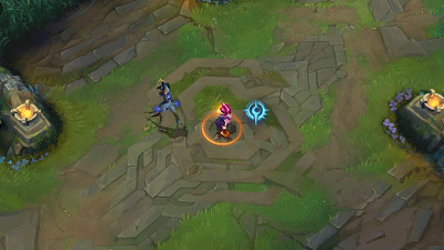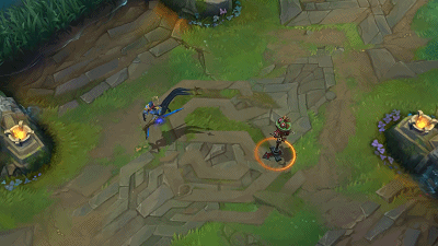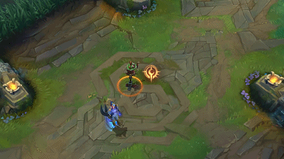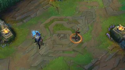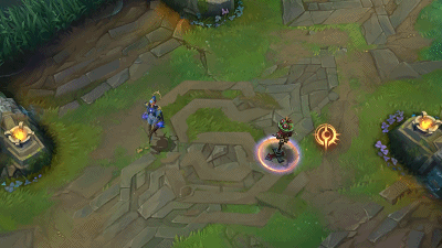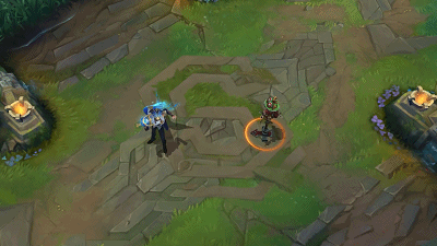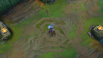 最後就是重頭戲大招了,崔斯特開啟R-命運之後,敵方英雄頭上跳出了類似於克蘇魯之眼的標記,隨後再次釋放R,地上還會有讀秒提示,傳送過程中還會有一個特效。