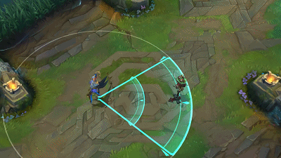 E技能疊滿後,可見崔斯特的腳下亮起一個光環,隨後扔出的特殊攻擊卡牌,會附帶紫色流光。
