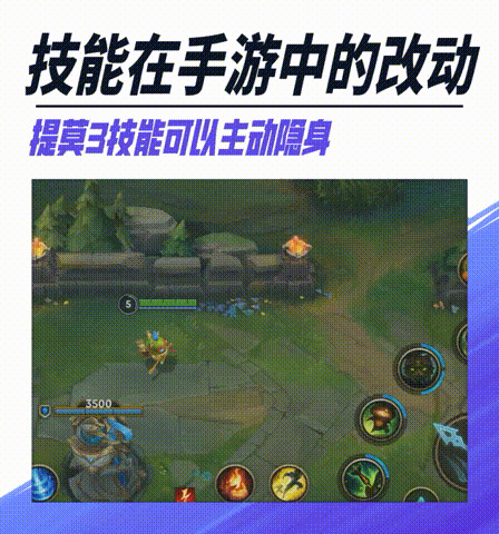 最後一位英雄是迅捷斥候·提莫。手游中提莫的E技能是和被動進行了互換,並且把名稱改為了「游擊隊軍備」,增加了主動隱身的效果,算是個小加強啦,其實提莫對上短手英雄,經典長手打短手並不弱的。《英雄聯盟手游》攻略——英雄聯盟手游對比端游技能改動盤點:寒冰的水晶箭可以拐彎,盲僧不用摸眼就可以位移!
