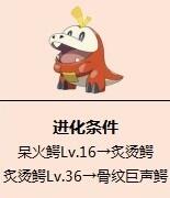 呆火鱷16級升級進化炙燙鱷,36級升級進化骨紋巨聲鱷。