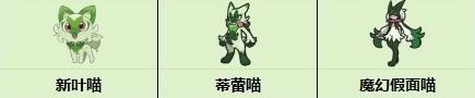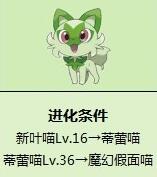 新葉喵16級升級進化蒂蕾喵,36級升級進化魔幻假面喵。