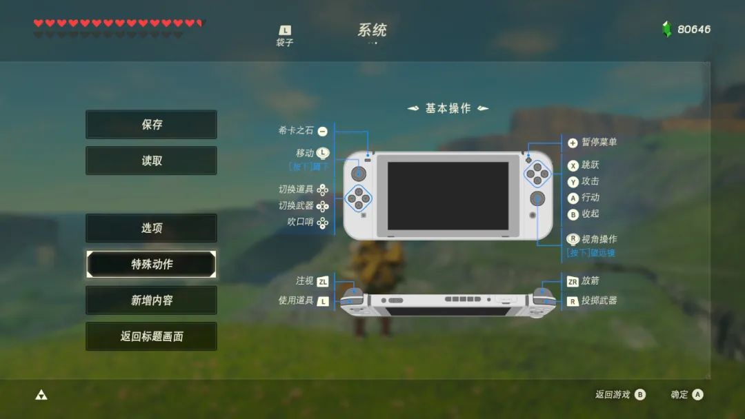 而這類技能在系統頁面是可以查看的,點「+」打開菜單後按「R」至最後一頁,其中的特殊動作選項就是部分自身技能的列表。