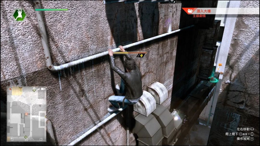 除了這些遊戲還增加歐美3A作品很喜歡的「潛入」和「爬牆」的功能,而《審判之逝》單就這兩個完成度而言,只能說「革新尚未成功,如龍組尚需努力」。潛入最大的問題還是強制扔硬幣,原本觀察敵人轉身之後明明可以直接潛入過去幹掉敵人,可是這個方法在《審判之逝》中是行不通的,玩家必須扔硬幣讓敵人轉身,才能出發一鍵勒脖的QTE。