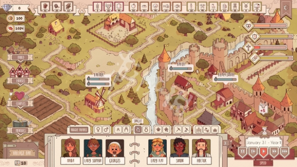 從名不見經傳的村莊,到繁榮昌盛的王國:善用手頭資源,讓村莊發展壯大。撮合愛侶,將鎮上的小情侶們兩兩配對,找到最佳搭配,打造出最強盛、最幸福的定居點。延續血脈:幸福的夫妻會誕下子女,子女會繼承其父母的特點。