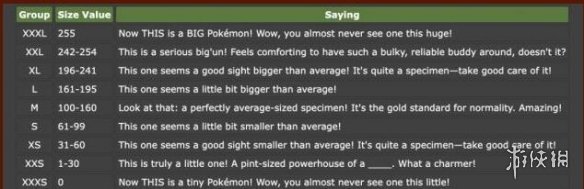 判定標准:非常嚴苛,每個寶可夢的體型範圍在0-255中的任意一個數值。