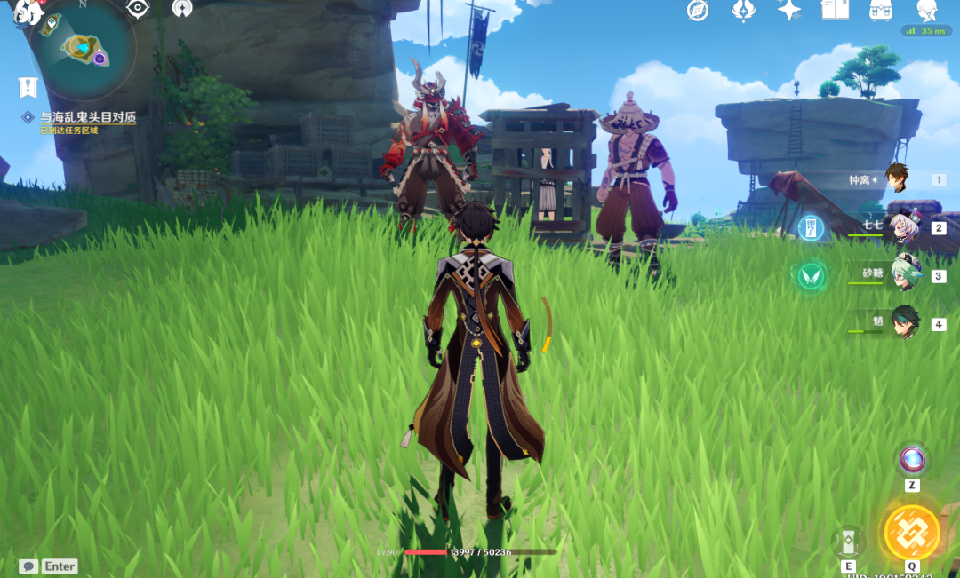 接著去刃連島找到柴門二郎交談,然後與海亂鬼頭目對質,擊敗所有敵人(四波怪物:第一波:野伏眾+海亂鬼,第二波:盜寶團,第三波:盜寶團 ,第四波:愚人眾 )