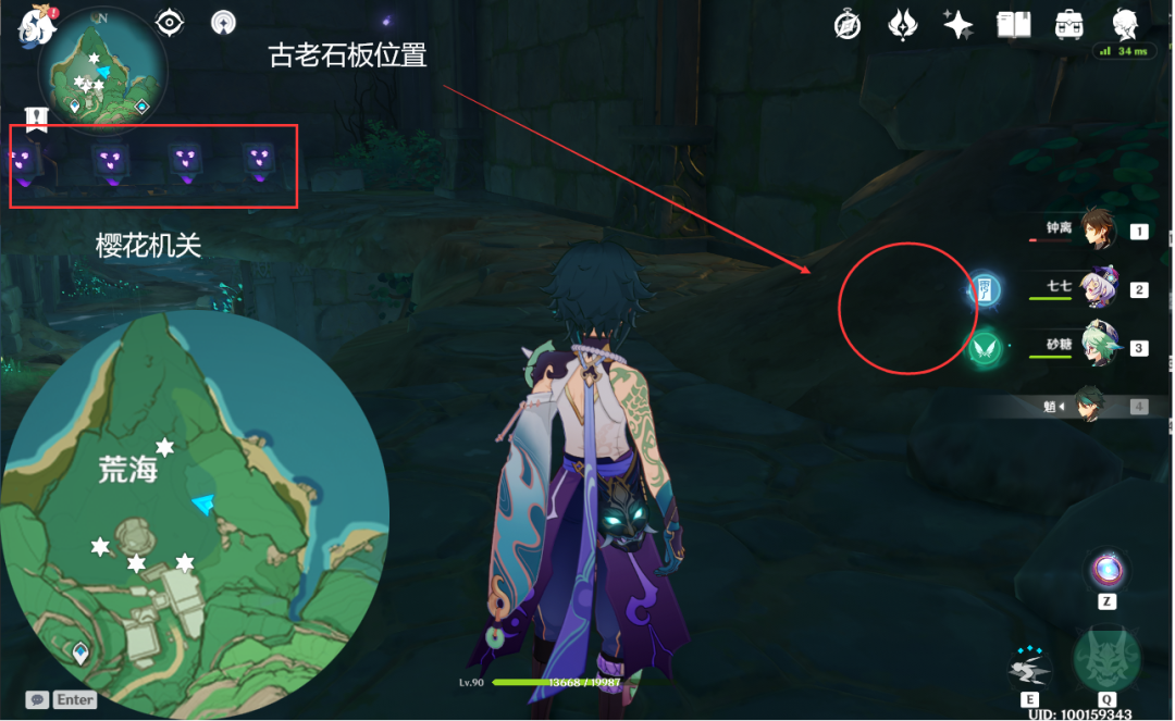 ②在荒海大井裡面,需要完成【神櫻大祓 —荒海】,位置在五個櫻花機關旁邊地上,