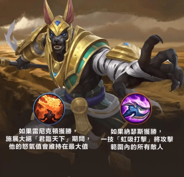 · 如果雷克頓獲勝,施展大招R「終極統治」期間,他的怒氣值會維持在最大值(等於無限怒氣了)。