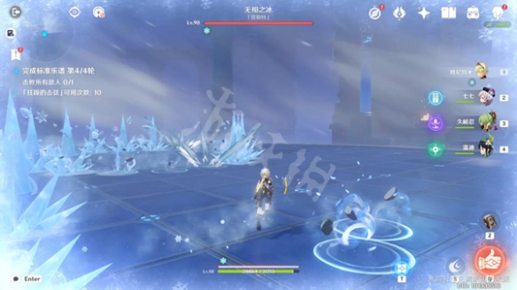 變更:這個技能沒有變化,就還是和原來一樣。應對方法的話,可以引導無相之冰撞在秘境的透明牆壁上,也能直接中斷的。