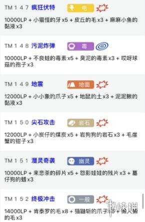 部分技能機配方如下: