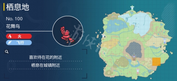 花舞鳥是火和飛行屬性的寶可夢,想要抓姆克鳥可以去地圖東南部的偏東區域,大概就是深缽鎮的附近,具體分布區域如下圖。