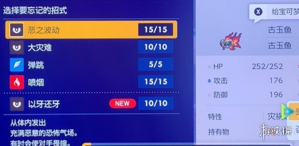 攜帶好講究眼鏡,然後吃藥,什麼的練到100級,然後查看能力,回憶招式,找到惡之波動,然後選擇第一個替換。讓第一個技能是惡之波動即可。