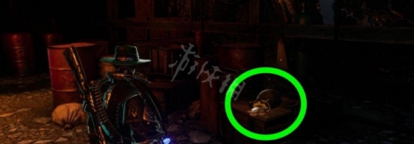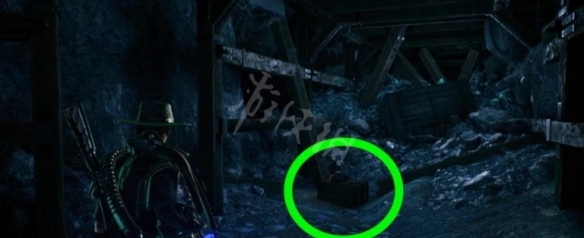 1、進入礦井之後,打爆右側炸藥桶,在後方可以拿到現金。