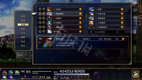 強化流核心技能:魔法掃帚(替換)、風精靈、再生(替換)、海龜盾防、狂戰士,如圖魔導力2700、攻擊力5000、防禦5500,攻速鬼畜(禁用升龍劍,向上攻擊),光速回血。