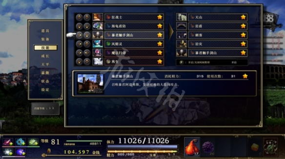核心嘉隆:自動連擊、惡魔的右手、暗黑、惡魔的狂熱、強化持續(替換)、武士道、爆發、召喚的秘訣。