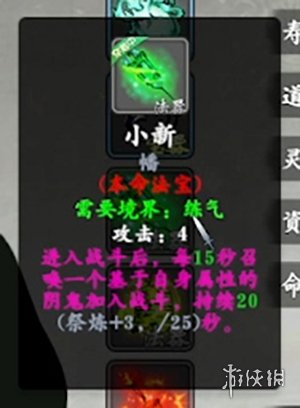 屬性:進入戰斗後,每15秒召喚一個基於自身屬性的陰鬼加入戰斗,持續20(祭煉3,/25)秒