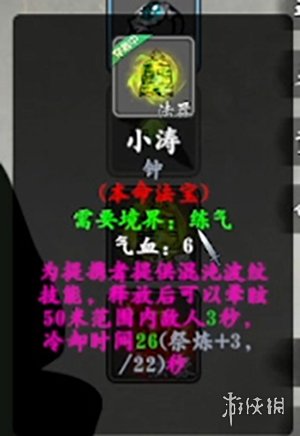 屬性:為自身提供四海領域技能,釋放後半徑50米內敵人移速,攻速,技能飛行速度降低-12(祭煉+3,/-15)%