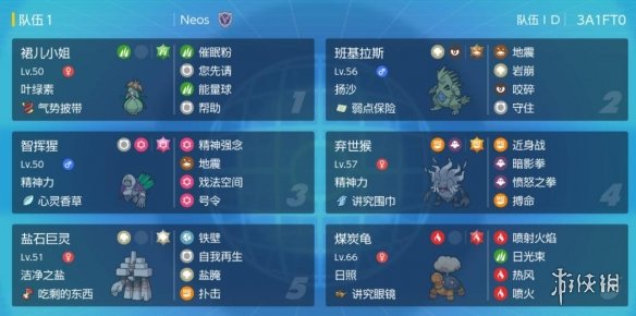 老班主要是帶著用來反制超能兄妹的,沙暴天氣下可以頂紅蓮鎧騎一發太晶草能量球然後弱點保險反殺。剩下一個位置90%的時間用不到,我帶的沙暴兄弟鹽石巨靈,要調整的話也可以換奇麒麟或者三頭龍。