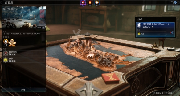 可選擇出擊任務。劇情任務為主線,完成後可推動劇情發展。而—般任務與劇情任務不同,沒有強制要求主角獵人必須出擊。另外,一般任務會附帶英雄挑戰,用情報購買後,戰斗任務將新增一項帶有額外獎勵的可選目標。