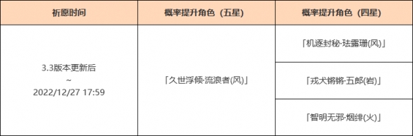 原神的3.3版本即將正式上線了,其中更新了全新的人物流浪者,很多小夥伴可能還不清楚流浪者up池是什麼吧,今天小編給大家帶來原神3.3流浪者卡池一覽,感興趣的小夥伴快來看一下吧。