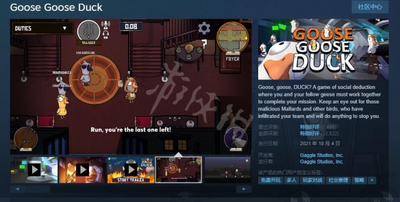 玩家可以在steam網頁端商店或者直接打開軟體商店搜索"Goose Goose Duck"即可找到本作,注意只能用英文搜索。