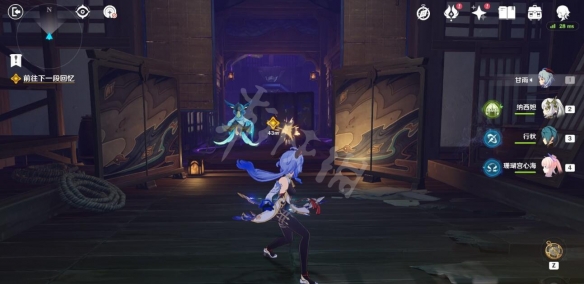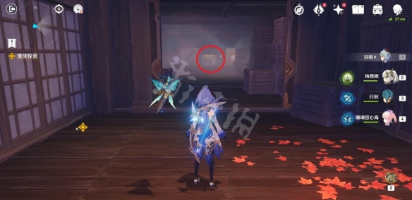 前面會遇到愚人眾,將所有愚人眾全部清理掉,然後先不要往前走。左側可以看到一些屏風,攻擊將屏風破壞,可以在屏風後面找到寶箱。