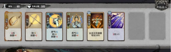 1.加劍意的牌只留兩張2星加防,第五回合即可鎖住一血,【雲泉道茶】用來升級【流雲亂劍】。