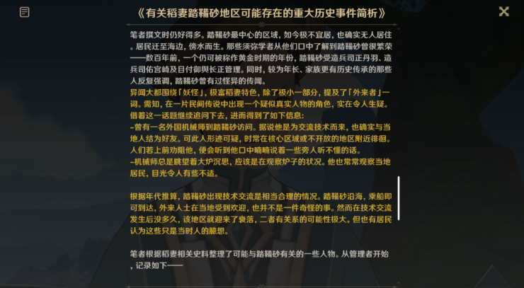 2、閱讀《有關稻妻踏鞴砂地區可能存在的重大曆史事件簡析》。