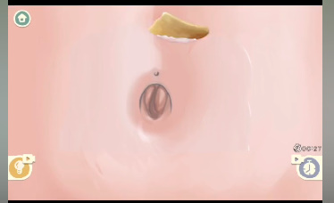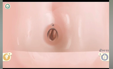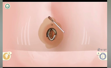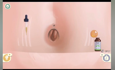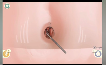 《收納物語》別有洞天通關攻略:1、首先我們取下臍釘,用碘伏棉簽給肚臍眼消毒。
