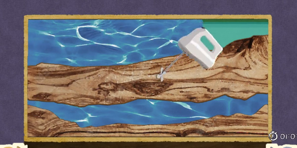 3、接著我們倒上藍色顏料,再倒綠色顏料,用攪拌機攪拌。