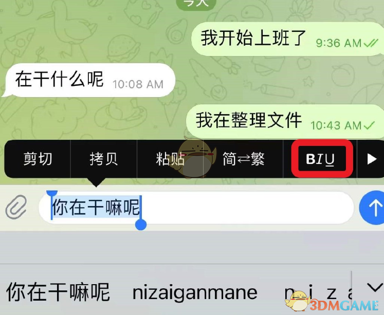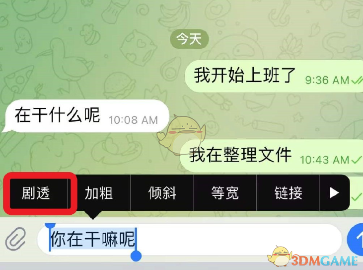 1、打開Telegram,在消息框輸入想隱藏的文字