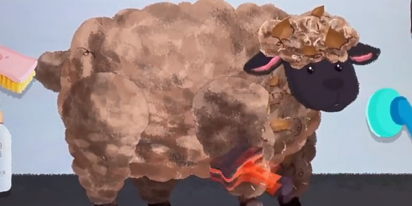 4、最後我們用紅色剪刀把羊毛剪掉,用推子推羊毛,點擊小羊開始擼羊毛,再用推子推干凈,頭頂上羊毛也要薅干凈哦。