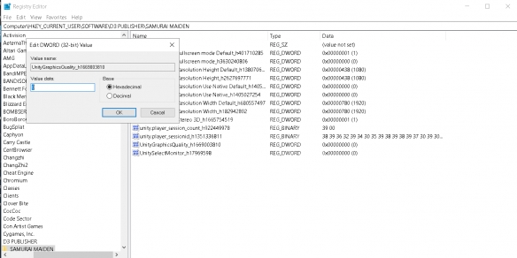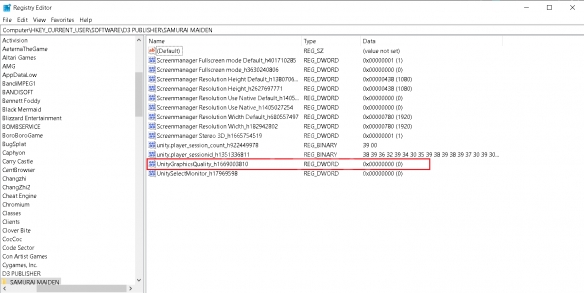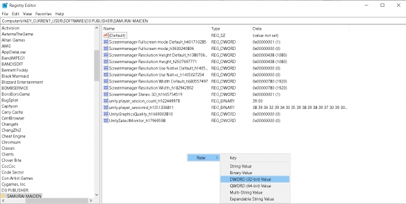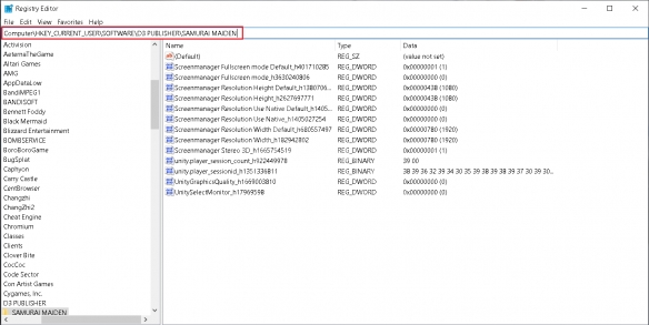 ComputerHKEY_CURRENT_USERSOFTWARED3 PUBLISHERSAMURAI MAIDEN
