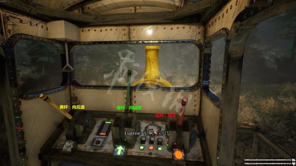 等Eugene上車後,推動綠桿啟動火車(所有操縱桿效果如圖所示)。