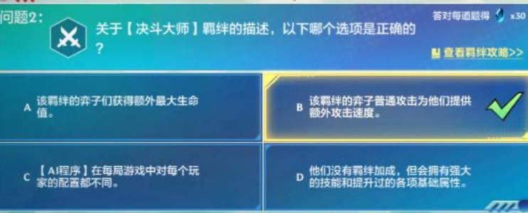 答案:B.該羈絆的弈子普通攻擊為他們提供額外攻擊速度。