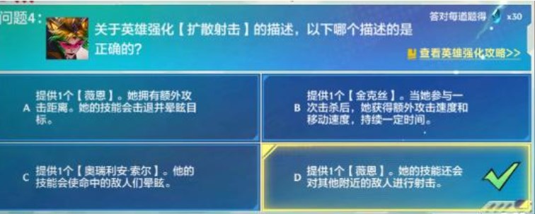 4、關於英雄強化【擴散射擊】的描述,以下哪個描述的是正確的?