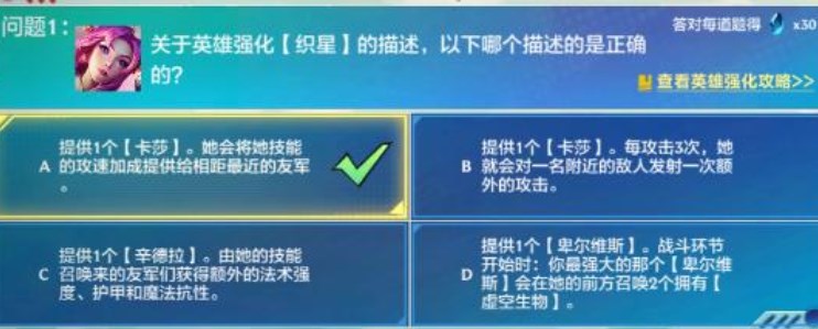 1、關於英雄強化【織星】的描述,以下哪個描述的是正確的?