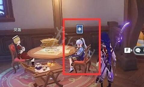 3、以貓尾酒館的來客為例,我們進入貓尾酒館後朝著右側移動,可以看到【神里綾華】。