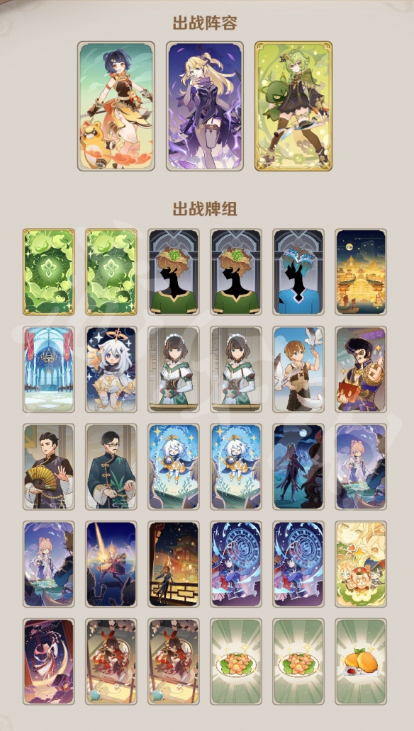 這套卡非常受歡迎,很多人都在用。強勢之處是通過皇女、香菱、柯萊的召喚物在結束時刻頻繁觸發反應,不經意間對對方前台角色造成大量傷害。