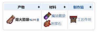 使用1個魔法箭袋和1個岩漿石,可以在工匠作坊合成1個熔火箭袋。