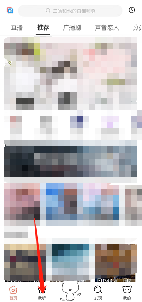 1、首先打開貓耳fm,找到下方的【我聽】。